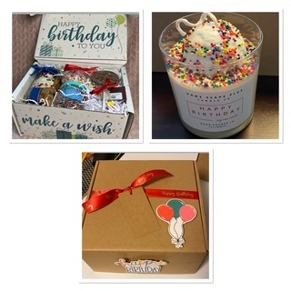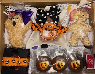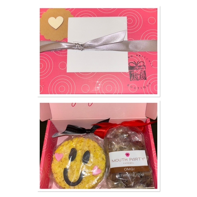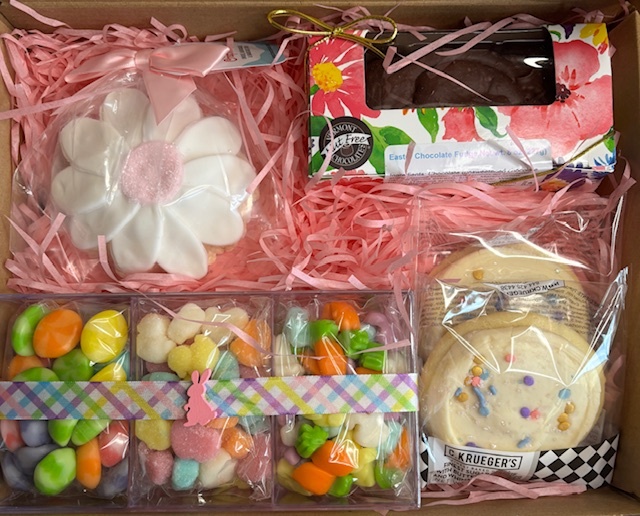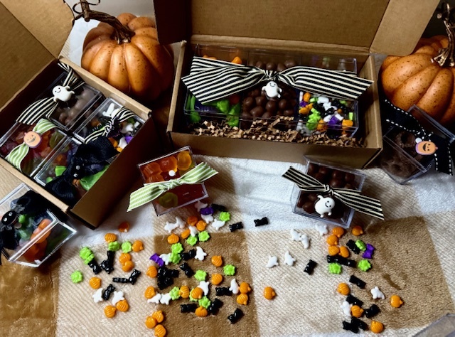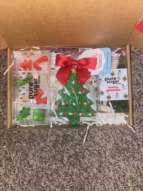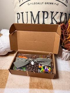 Four mini treat boxes. Each filled with 3 to 4 ounces of sour, gummy or chocolate treats. Comes in a corrugated gift box.