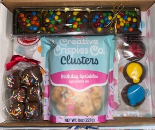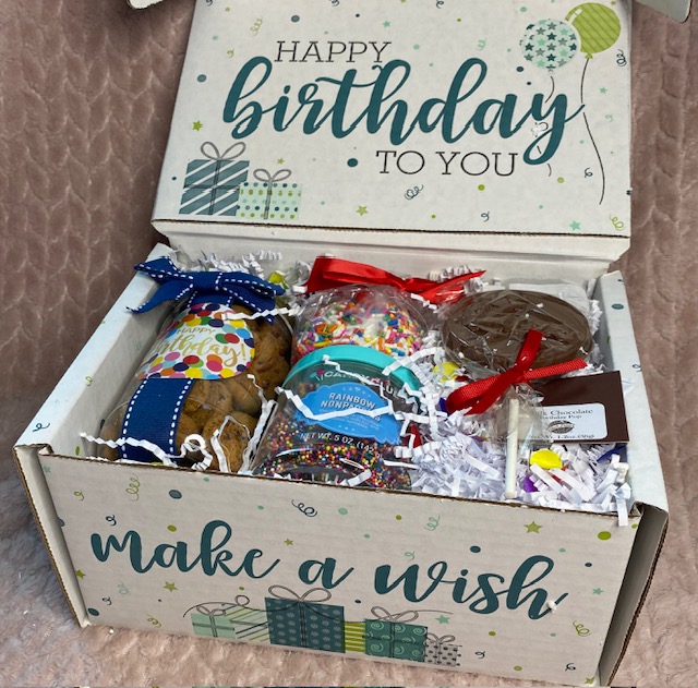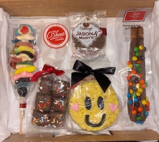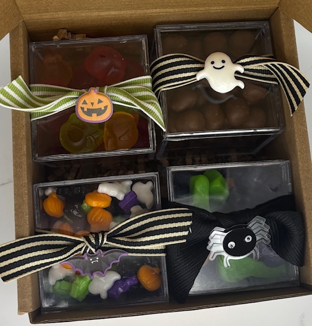 Each mini treat box is filled with 3 to 4 ounces of sour, gummy or chocolate treats