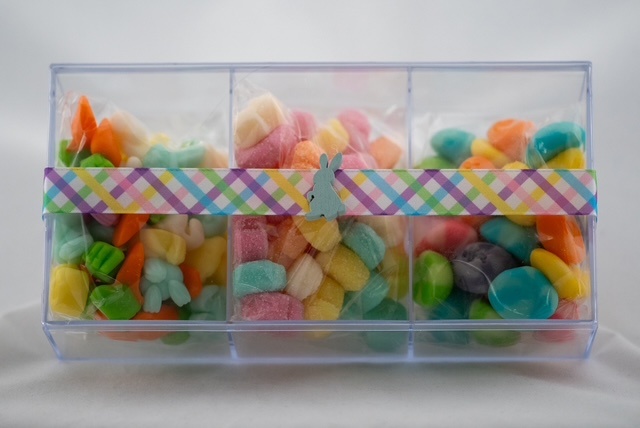 Each section is filled with 5 to 6 ounces of sour, gummy or chocolate treats