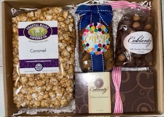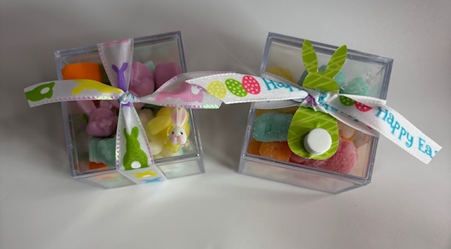 Each mini box includes about 3-4 ounces of gummy, sour or chocolate candies.